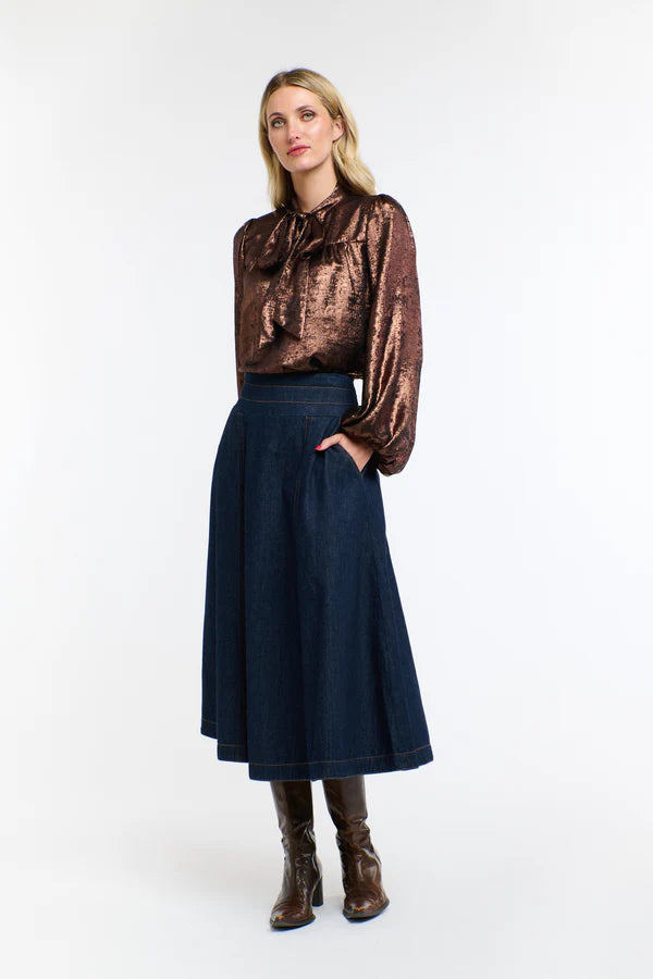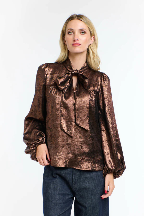 Elegant and stylish, the Pussy Bow Top is designed to stand out with its subtle lustre and soft drape. This top features a self-tie neckline, softly gathered sleeves and a relaxed silhouette that moves with ease. Pair with denim, fluid pants or a tailored skirt for a look that goes from dinner to event dressing without missing a beat.