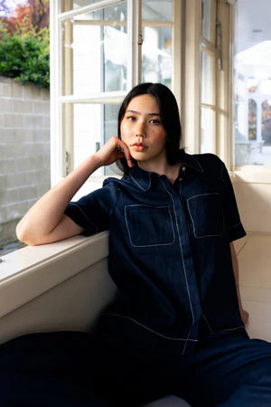 A relaxed crop with a little edge. The In Contrast Pant is cut from a lightweight, breathable pure linen with crisp ivory top-stitching that frames the shape. A clean, flat front keeps it polished while the softly elasticated back waistband makes it an easy, pull-on fit. The gently tapered leg finishes at an ankle-skimming length with small side splits—perfect for sandals or sneakers.
