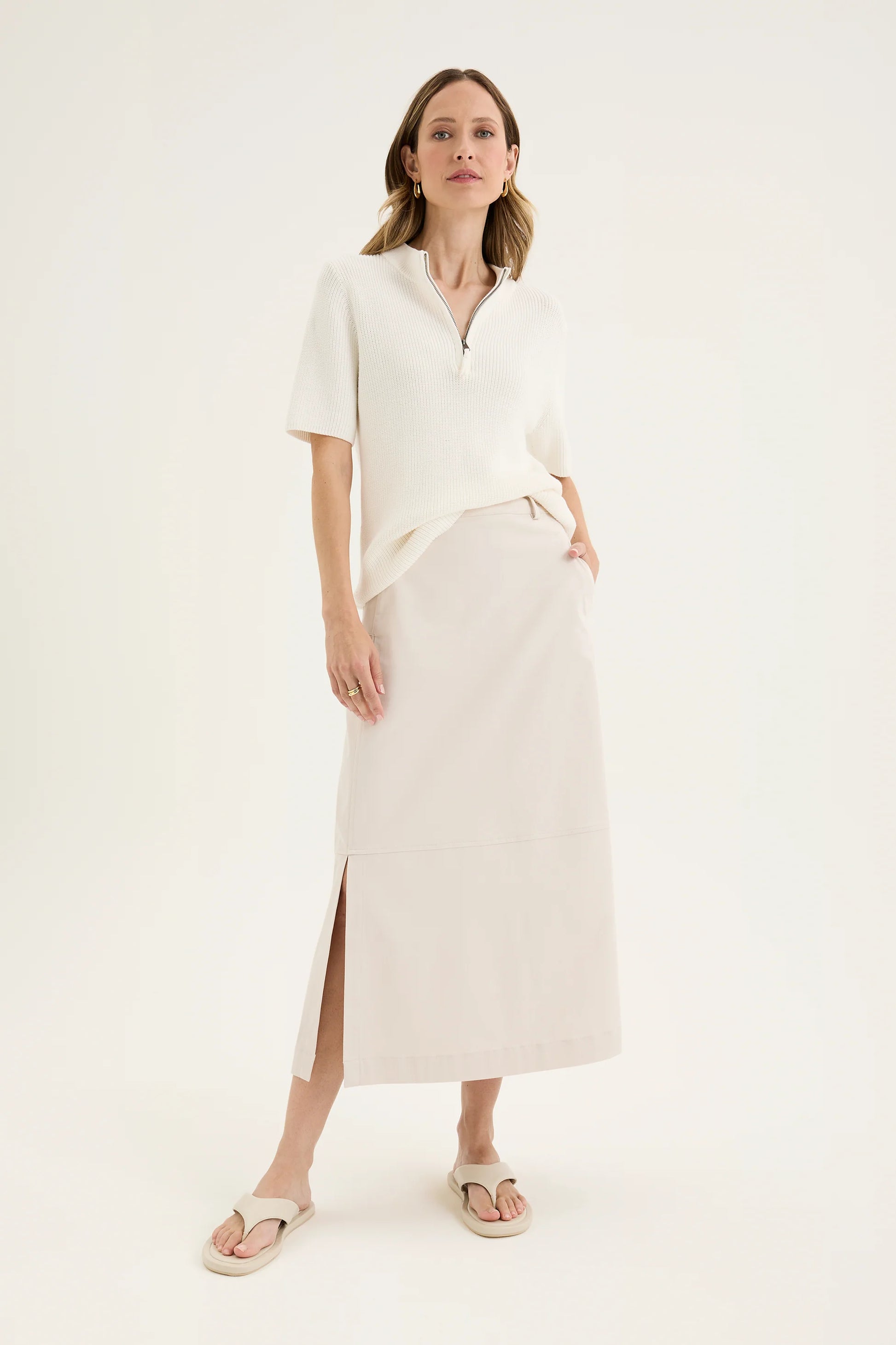 The Cordon Knit is a modern update on the classic knit shirt. Crafted from 100% cotton with a chunky ribbed knit, it balances structure with softness for a confident, polished look. The turtle neck features a quarter zip for versatile styling, while the short sleeves at elbow length offer a clean, modern silhouette that transitions effortlessly between seasons. Finished with a touch of minimalist tailoring, it’s the kind of piece that speaks to quality without saying a word - quietly elevated, endlessly wearable.