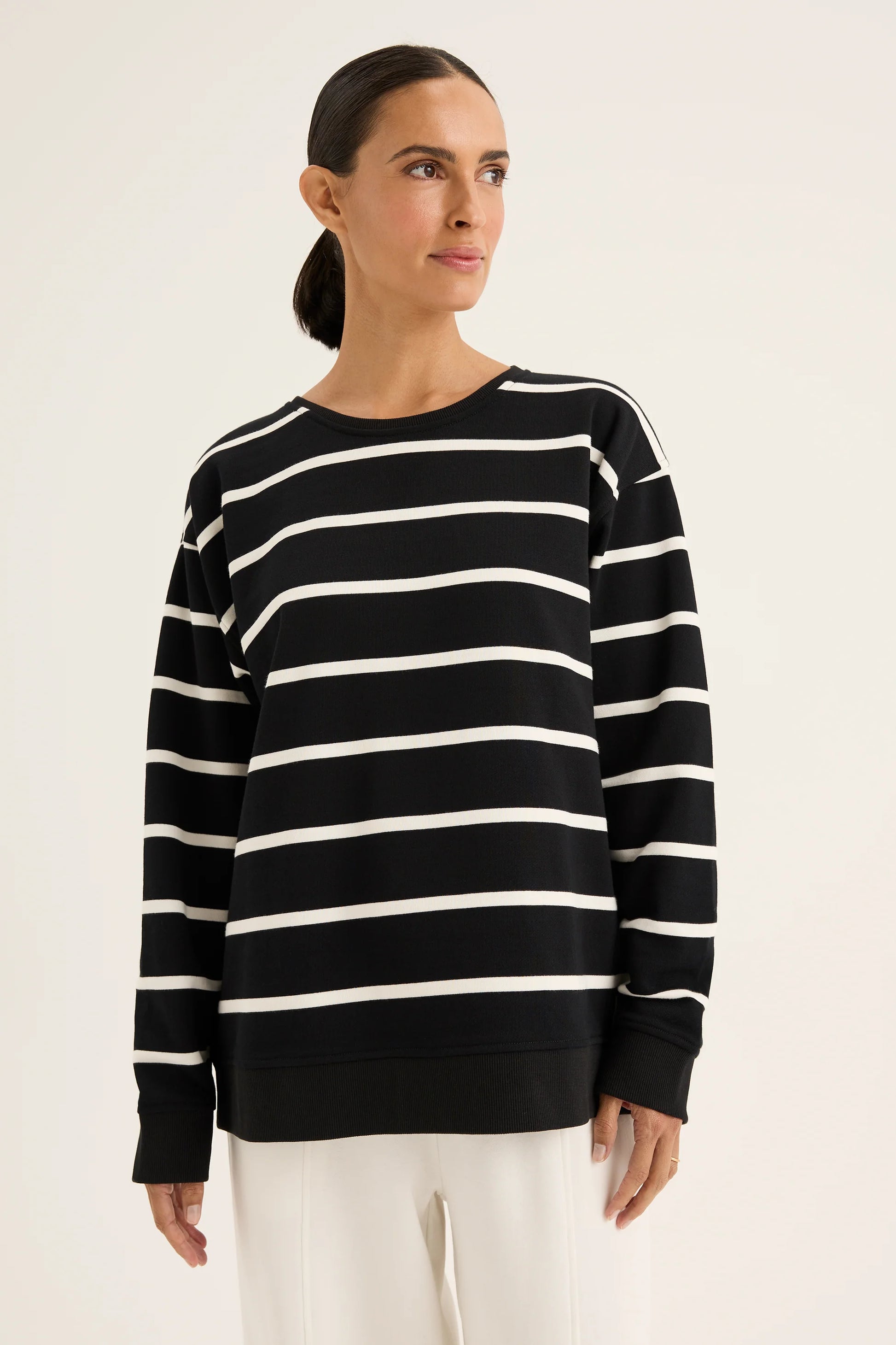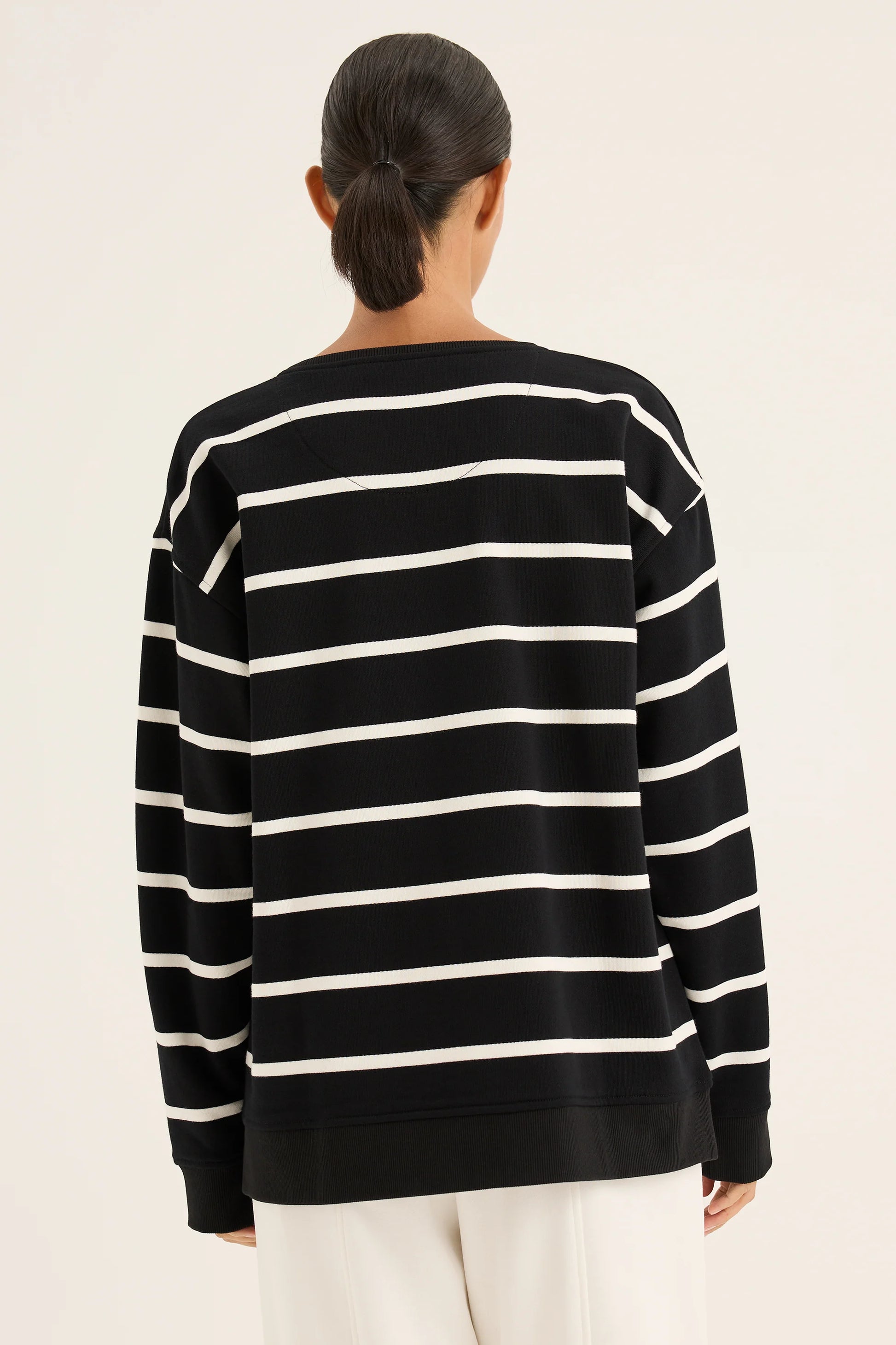The Infinity Sweat is a classic by its stripe design. Featuring the round neckline and long sleeves ensure its timeless profile. With the side split and the relaxed fit, it offers the ease of movement. Effortlessly style it with any of your favourite bottoms for the chic and fun twist outfit this winter.