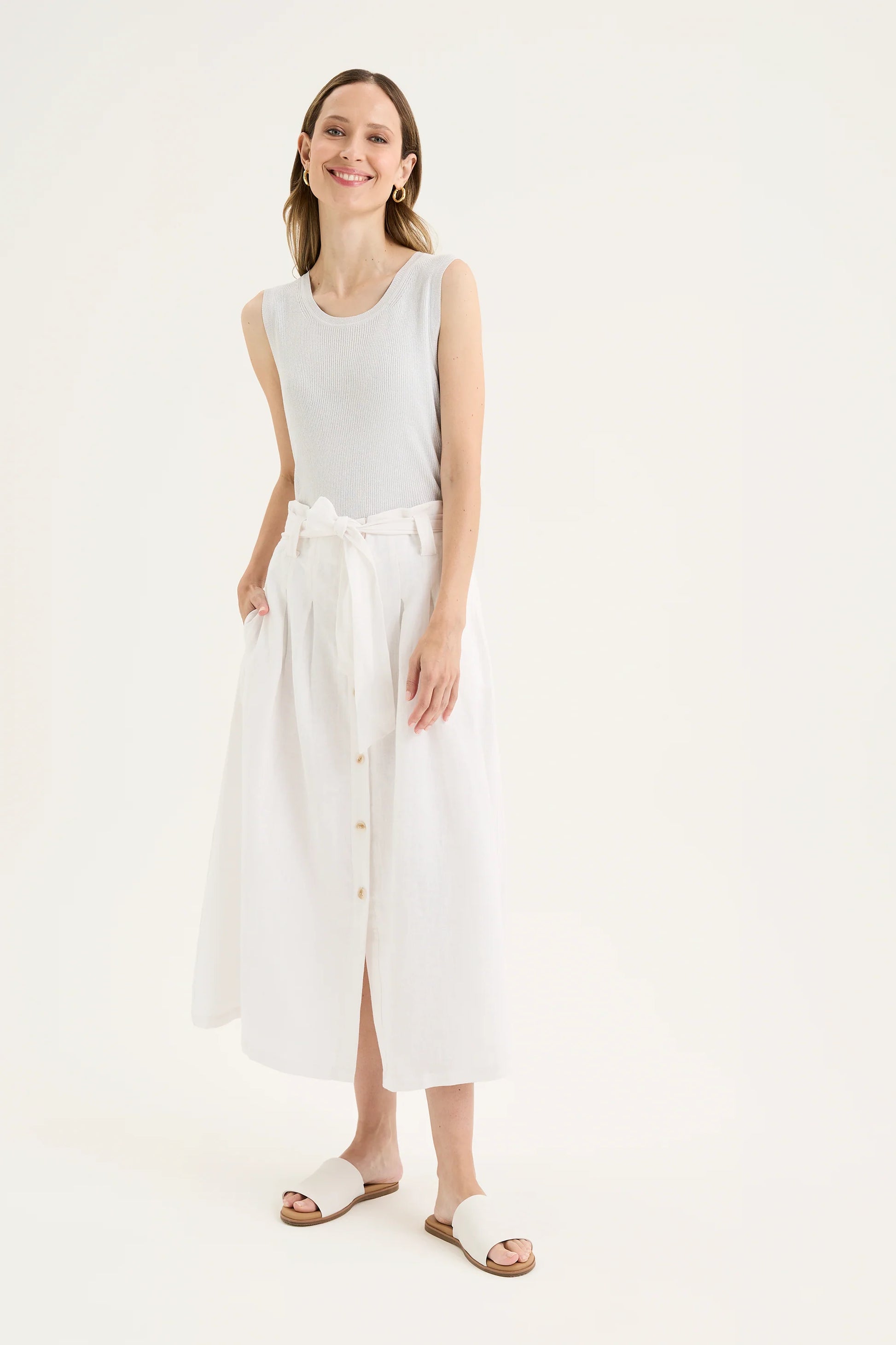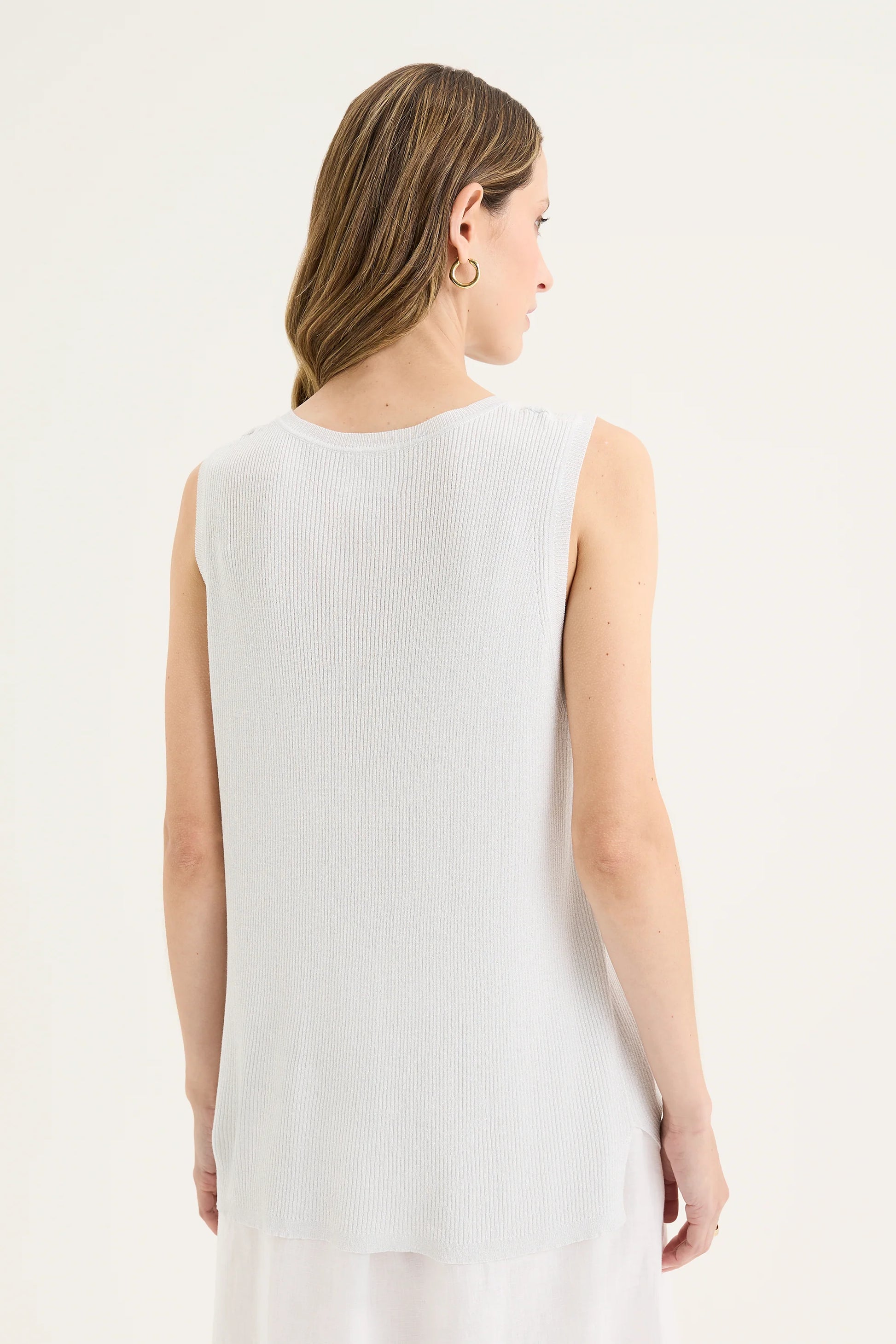 The Miami Knit is a true investment piece, designed to fit seamlessly into any summer wardrobe. Crafted from a breathable metallic yarn, it takes the ease of a classic ribbed tank and elevates it with signature Yarra Trail craftsmanship. Wide shoulder straps and a clean round neckline create a simple, versatile shape that pairs effortlessly with everything, while side slits at the hem let it drape naturally or tuck in neatly without bulk. Lightweight enough for summer yet woven with a considered weight that shows its quality, the Miami Knit is a piece you’ll return to all season - polished enough to wear on its own, timeless enough to layer with ease.