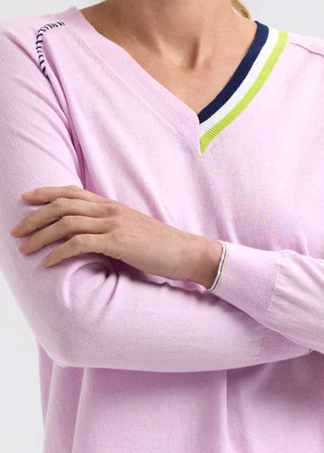 A fresh take on everyday knitwear. This V-neck jumper features a softly rounded hem and side splits for ease and movement